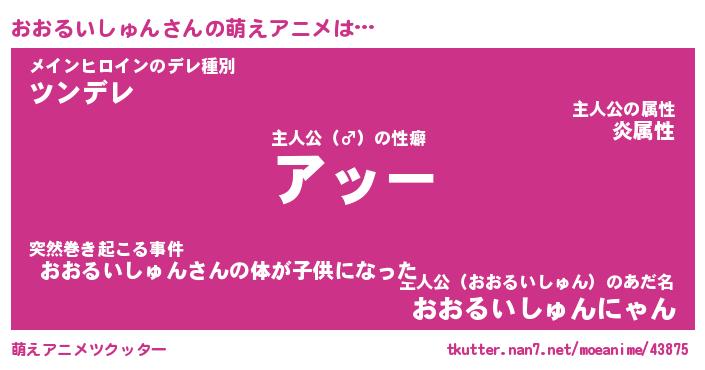 | 男性向けラノベタイトル風あだ名 | 『オオルイシュンアートオンライン』 |