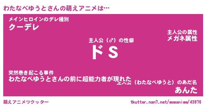 | 女子向けラノベタイトル風あだ名 | 『(仮)わたなべゆうとのやんごとなき事情』 |