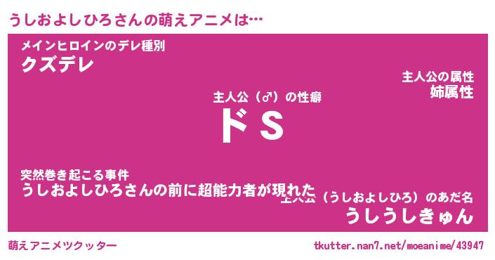 | 男性向けラノベタイトル風あだ名 | 『うしおよしひろの憂鬱』 |