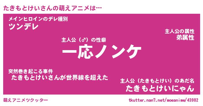| 男性向けラノベタイトル風あだ名 | 『タキモトケイアートオンライン』 |