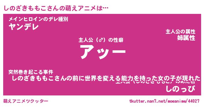 | 女子向けラノベタイトル風あだ名 | 『誰かこのしのざきももこを説明してください! ~契約から始まるウェディング~』 |