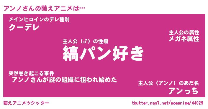 | 男性向けラノベタイトル風あだ名 | 『アンノの憂鬱』 |