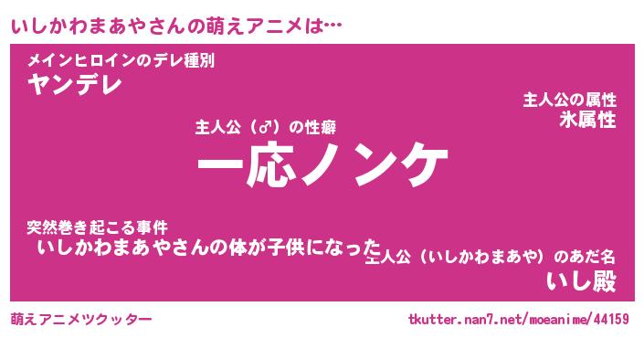 | 女子向けラノベタイトル風あだ名 | 『誰かこのいしかわまあやを説明してください! ~契約から始まるウェディング~』 |
