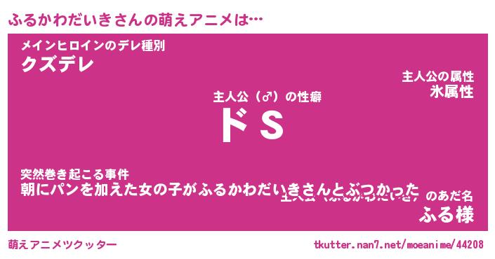| 女子向けラノベタイトル風あだ名 | 『(仮)ふるかわだいきのやんごとなき事情』 |