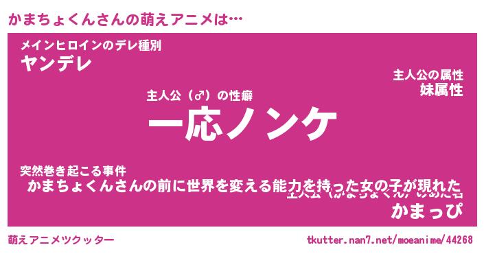 | 男性向けラノベタイトル風あだ名 | 『カマチョクンアートオンライン』 |