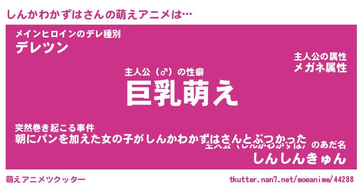 | 男性向けラノベタイトル風あだ名 | 『しんかわかずはの憂鬱』 |
