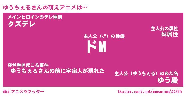 | 男性向けラノベタイトル風あだ名 | 『ゆうちぇるの憂鬱』 |