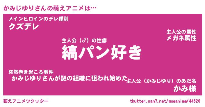 | 男性向けラノベタイトル風あだ名 | 『かみじゆりの憂鬱』 |