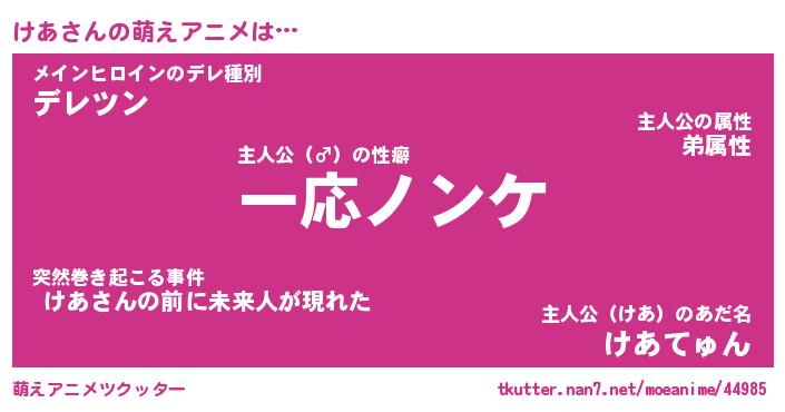 | ヘコむあだ名 | 『けあもー』『なまこ酢』『けあお』 |