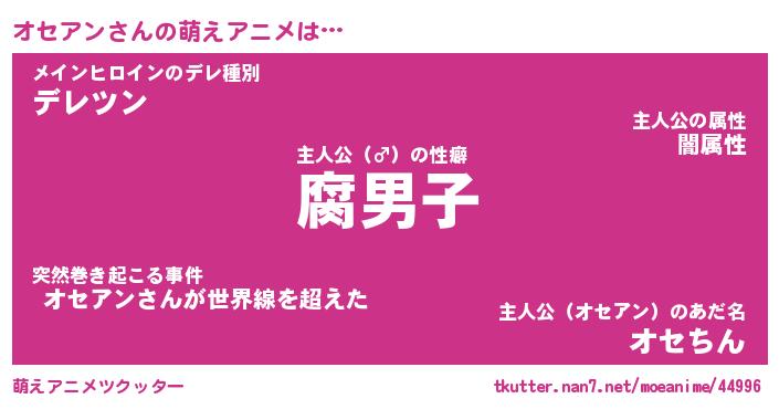 | 男性向けラノベタイトル風あだ名 | 『オセアンアートオンライン』 |