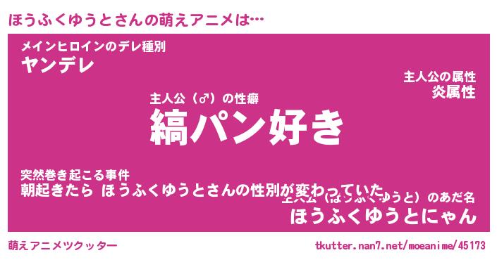| 女子向けラノベタイトル風あだ名 | 『(仮)ほうふくゆうとのやんごとなき事情』 |