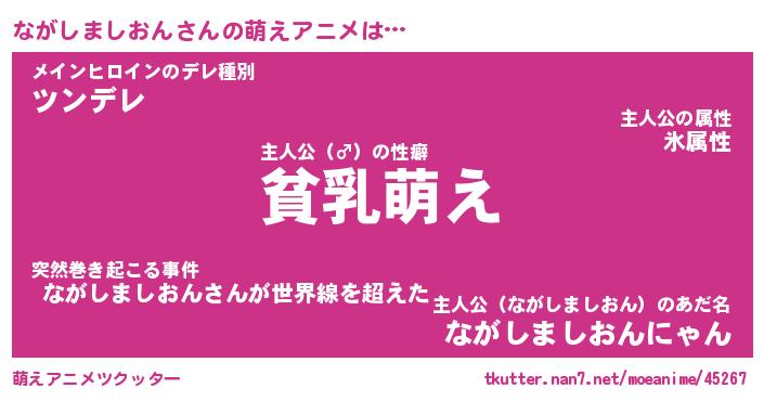 | 男性向けラノベタイトル風あだ名 | 『ながしましおんの憂鬱』 |