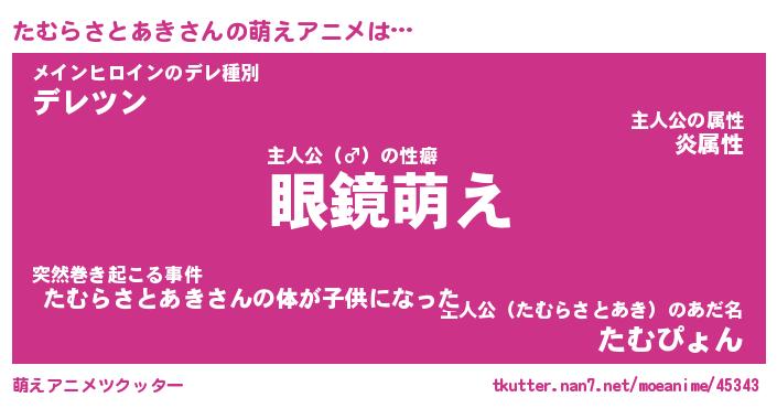 | 男性向けラノベタイトル風あだ名 | 『たむらさとあきの憂鬱』 |