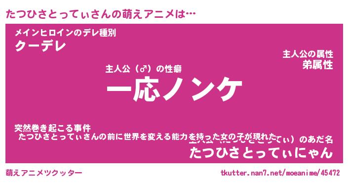 | 女子向けラノベタイトル風あだ名 | 『誰かこのたつひさとってぃを説明してください! ~契約から始まるウェディング~』 |