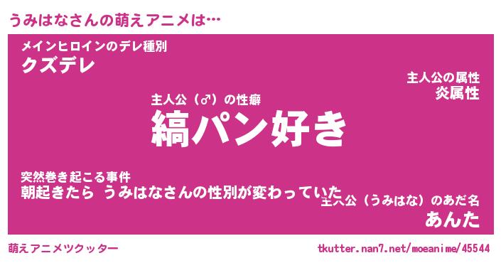 | 男性向けラノベタイトル風あだ名 | 『うみはなの憂鬱』 |