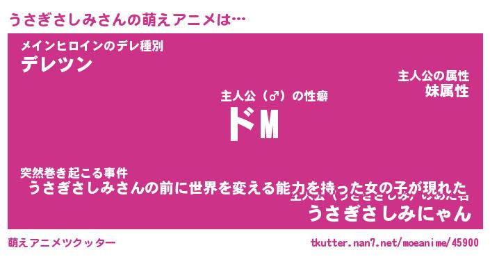 | 男性向けラノベタイトル風あだ名 | 『うさぎさしみの憂鬱』 |
