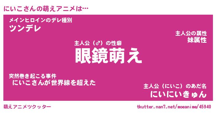 | 男性向けラノベタイトル風あだ名 | 『にいこの憂鬱』 |