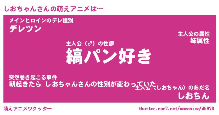 | 男性向けラノベタイトル風あだ名 | 『しおちゃんの憂鬱』 |