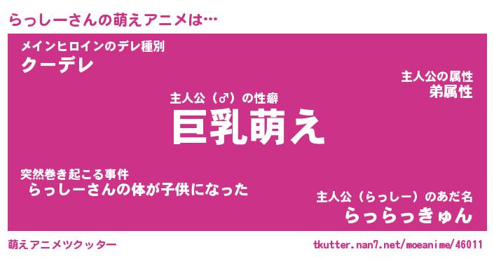 | 男性向けラノベタイトル風あだ名 | 『らっしーの憂鬱』 |