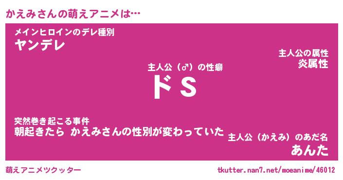 | 男性向けラノベタイトル風あだ名 | 『かえみの憂鬱』 |