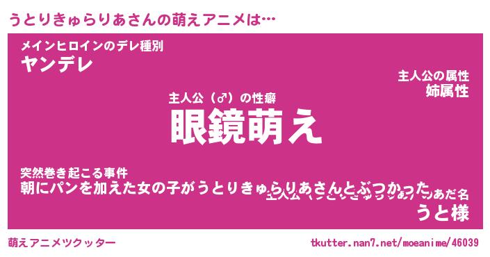 | 男性向けラノベタイトル風あだ名 | 『うとりきゅらりあの憂鬱』 |