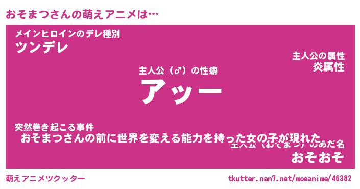 | 胡散臭い通販商品みたいなあだ名 | 『億万長者になれるブレスレット…その名も「おそまつ」』 |
