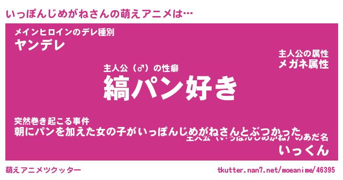 | 男性向けラノベタイトル風あだ名 | 『いっぽんじめがねの憂鬱』 |