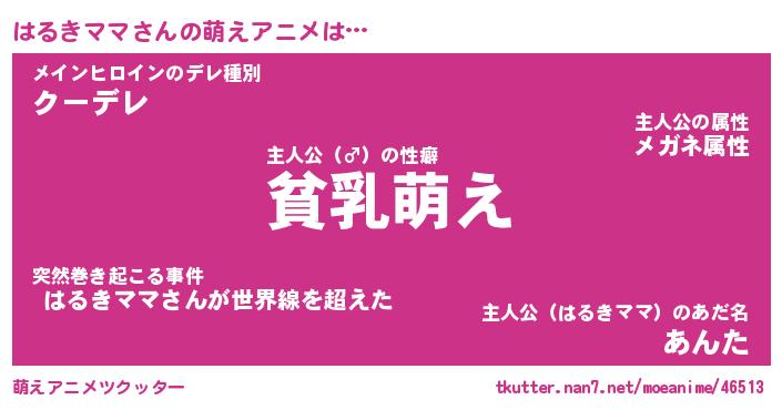 | 男性向けラノベタイトル風あだ名 | 『はるきママの憂鬱』 |