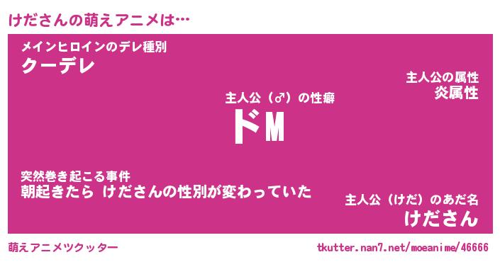 | 男性向けラノベタイトル風あだ名 | 『けだの憂鬱』『ノーゲーム・ノーケダ』 |