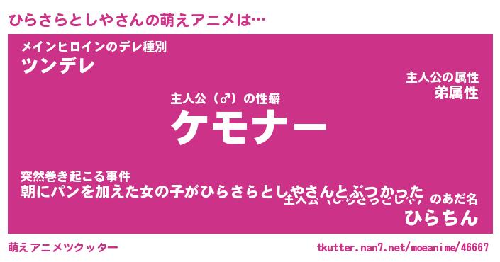 | 男性向けラノベタイトル風あだ名 | 『ヒラサラトシヤアートオンライン』 |