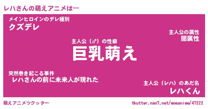 | 男性向けラノベタイトル風あだ名 | 『レハの憂鬱』 |