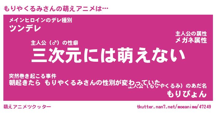 | 男性向けラノベタイトル風あだ名 | 『モリヤクルミアートオンライン』 |