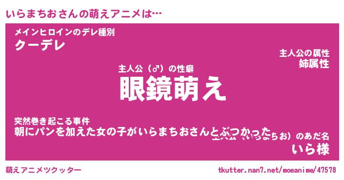 | 男性向けラノベタイトル風あだ名 | 『いらまちおの憂鬱』 |