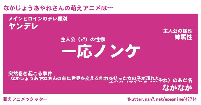 | 女子向けラノベタイトル風あだ名 | 『誰かこのなかじょうあやねを説明してください! ~契約から始まるウェディング~』 |