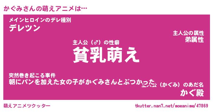 | 男性向けラノベタイトル風あだ名 | 『かぐみの憂鬱』 |
