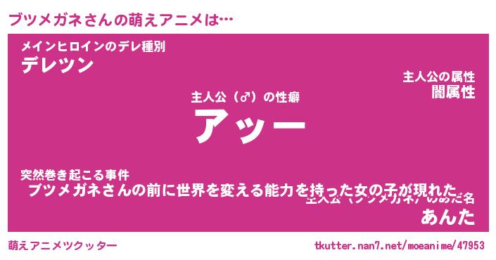 | 男性向けラノベタイトル風あだ名 | 『ブツメガネアートオンライン』 |
