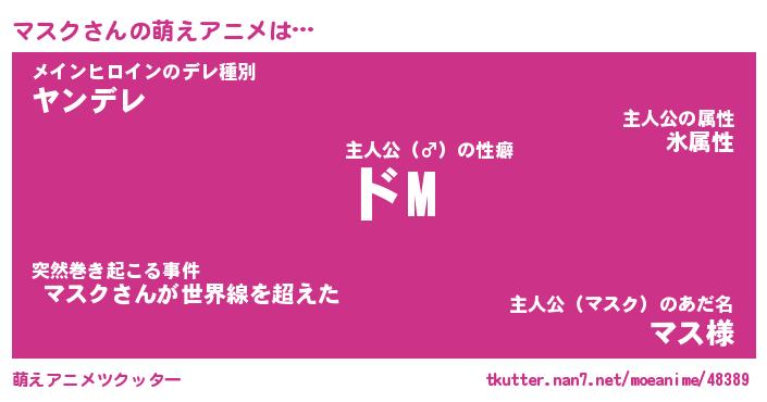 | 女子向けラノベタイトル風あだ名 | 『(仮)マスクのやんごとなき事情』 |