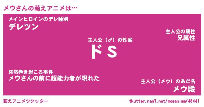| 女子向けラノベタイトル風あだ名 | 『(仮)メウのやんごとなき事情』 |