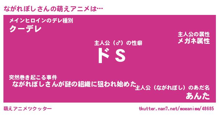 | 女子向けラノベタイトル風あだ名 | 『(仮)ながれぼしのやんごとなき事情』 |