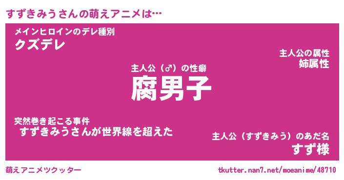 | ファンタジー風あだ名 | 『スズフェル』『エターナルスズキミウー』 |