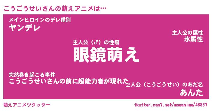 | 男性向けラノベタイトル風あだ名 | 『こうごうせいの憂鬱』 |