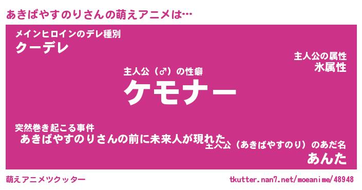 | 女子向けラノベタイトル風あだ名 | 『誰かこのあきばやすのりを説明してください! ~契約から始まるウェディング~』 |
