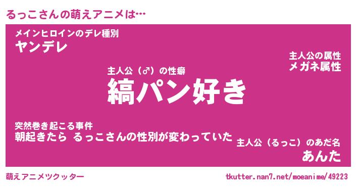 | 男性向けラノベタイトル風あだ名 | 『るっこの憂鬱』 |