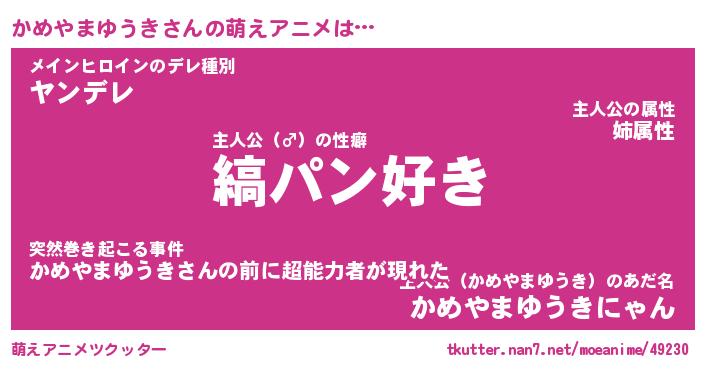 | 女子向けラノベタイトル風あだ名 | 『(仮)かめやまゆうきのやんごとなき事情』 |