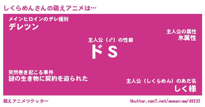 | 男性向けラノベタイトル風あだ名 | 『しくらめんの憂鬱』 |