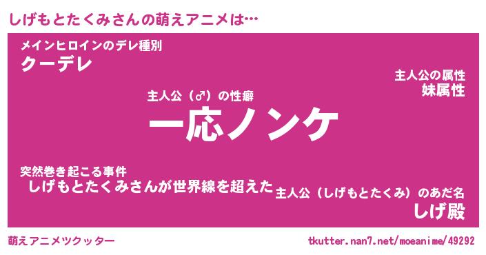 | ヘコむあだ名 | 『しげふぇ~』『酢こんぶ』『しげを』 |