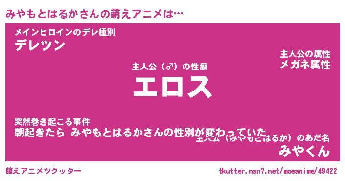| 女子向けラノベタイトル風あだ名 | 『誰かこのみやもとはるかを説明してください! ~契約から始まるウェディング~』 |