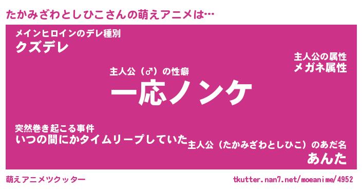 | 女子向けラノベタイトル風あだ名 | 『誰かこのたかみざわとしひこを説明してください! ~契約から始まるウェディング~』 |