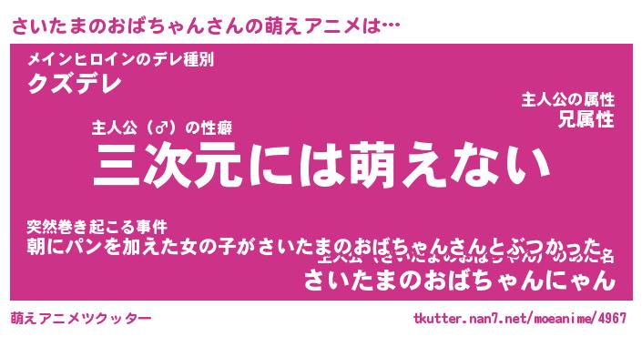 | ヒーロー風カッコイイあだ名 | 『スーパーサイタマノオバチャン』 |