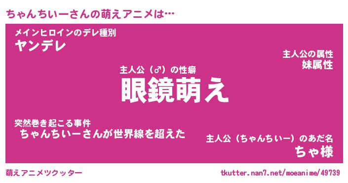 | 男性向けラノベタイトル風あだ名 | 『ちゃんちいーの憂鬱』 |